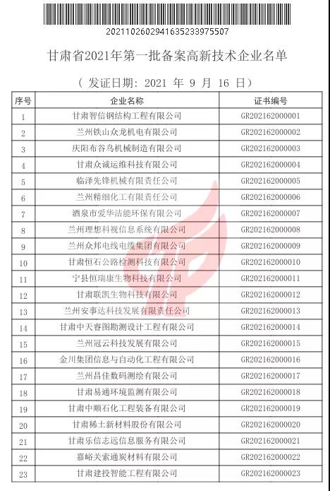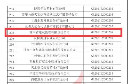 甘肅省水利水電勘測設(shè)計研究院有限責(zé)任公司中標(biāo)甘肅省引洮供水二期配套城鄉(xiāng)供水信息化專項工程方案、招標(biāo)設(shè)計及施工圖設(shè)計項目;平?jīng)鍪谐缧趴h棗林溝水庫工程;萬州區(qū)魚背山水庫大壩安全評估報告編制;協(xié)合拉引水樞紐、秋格爾引水樞紐、英爾引水樞紐安全評價項目。中標(biāo)蘭州中川機場三期擴建供油工程項目機坪航站區(qū)工程勘察。甘肅省建設(shè)監(jiān)理有限責(zé)任公司中標(biāo)省政府為民實事保障性租賃住房項目監(jiān)理。甘肅省建設(shè)監(jiān)理有限責(zé)任公司根據(jù)《高新技術(shù)企業(yè)認(rèn)定管理辦法》和《高新技術(shù)企業(yè)認(rèn)定管理工作指引》有關(guān)規(guī)定,全國高新技術(shù)企業(yè)認(rèn)定管理工作領(lǐng)導(dǎo)小組辦公室于10月26日正式公布了甘肅省2021年第一批備案的294家高新技術(shù)企業(yè)名單,建設(shè)監(jiān)理公司榜上有名,被評定為“高新技術(shù)企業(yè)”。