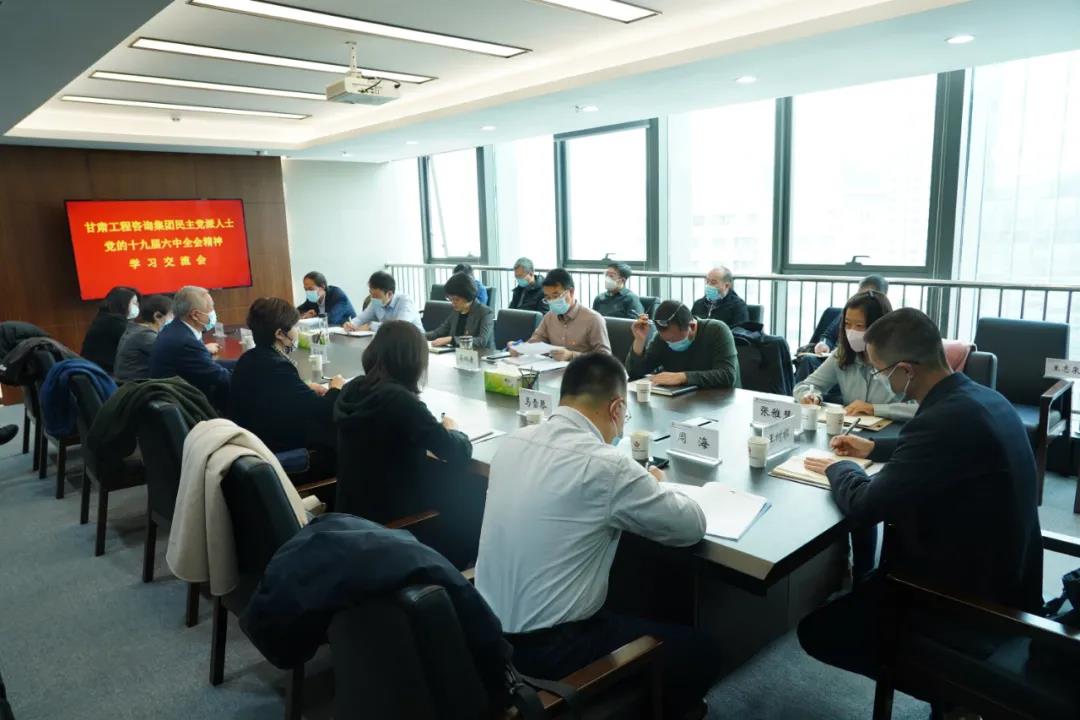 11月19日,甘肅工程咨詢集團召開民主黨派人士黨的十九屆六中全會精神學(xué)習(xí)交流會,學(xué)習(xí)了中國共產(chǎn)黨第十九屆中央委員會第六次全體會議公報和習(xí)近平總書記關(guān)于統(tǒng)一戰(zhàn)線重要論述,民主黨派人士代表進(jìn)行了黨的十九屆六中全會精神學(xué)習(xí)交流發(fā)言。受集團公司黨委書記、董事長宋忠慶委托,黨委副書記王春燕主持會議,集團公司黨委宣傳部、黨群工作部負(fù)責(zé)人及各子公司領(lǐng)導(dǎo)班子、中層干部中民主黨派人士代表參加會議。