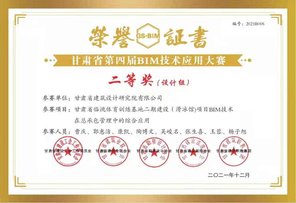 日前,甘肅省建設工會工作委員會、甘肅省建筑業(yè)聯(lián)合會、甘肅省勘察設計協(xié)會、甘肅省建設監(jiān)理協(xié)會、甘肅省建筑職教集團聯(lián)合舉辦的“2021年甘肅省職工職業(yè)技能競賽暨甘肅省第四屆BIM技術應用大賽”評選結果揭曉,甘肅省城鄉(xiāng)規(guī)劃設計研究院有限公司“BIM技術正向設計在蘭州中川國際機場三期擴建工程航站區(qū)附屬用房工程項目中的應用”獲得“BIM技術應用作品征集”比賽設計組一等獎;甘肅省建筑設計研究院有限公司“甘肅省臨洮體育訓練基地二期建設(滑冰館)項目BIM技術在總承包管理中的綜合應用”獲得二等獎,“緣善智慧港BIM項目”獲得三等獎;甘肅省建設監(jiān)理有限責任公司李燕燕獲得“BIM技術技能比賽”三等獎。