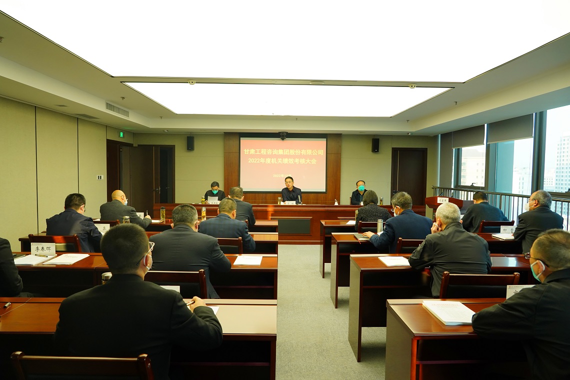 12月27日,甘肅工程咨詢集團召開2022年度總部機關績效考核大會,按照新修訂的《機關績效考核管理辦法(試行)》,對各職能部門績效、職能部門正副職崗位績效進行考核,同時對職能部門正副職進行年度政治素質考察專項測評。黨委書記、董事長馬明主持并講話。