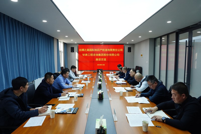 12月4日,甘肅工程咨詢集團(tuán)黨委副書記、總經(jīng)理張佩峰與來訪的絲綢之路國際知識產(chǎn)權(quán)港有限責(zé)任公司黨委書記、董事長賀泉茗一行座談,圍繞知識產(chǎn)權(quán)全鏈條業(yè)務(wù)、科技成果轉(zhuǎn)化、數(shù)字經(jīng)濟(jì)等領(lǐng)域進(jìn)行深入交流。