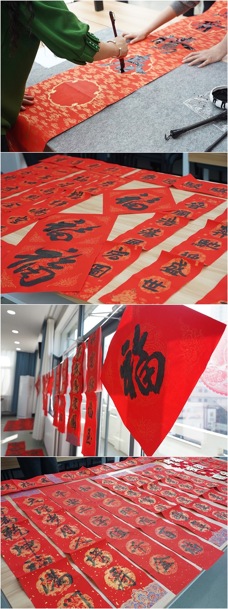 活動(dòng)現(xiàn)場(chǎng)墨香四溢,職工們熱情參與,有的圍桌挑選心儀作品,有的現(xiàn)場(chǎng)“點(diǎn)單”定制專屬春聯(lián),一副副寓意吉祥的春聯(lián)、一個(gè)個(gè)筆力遒勁的“?!弊周S然紙上,承載著大家對(duì)新年的美好期盼與祝福。