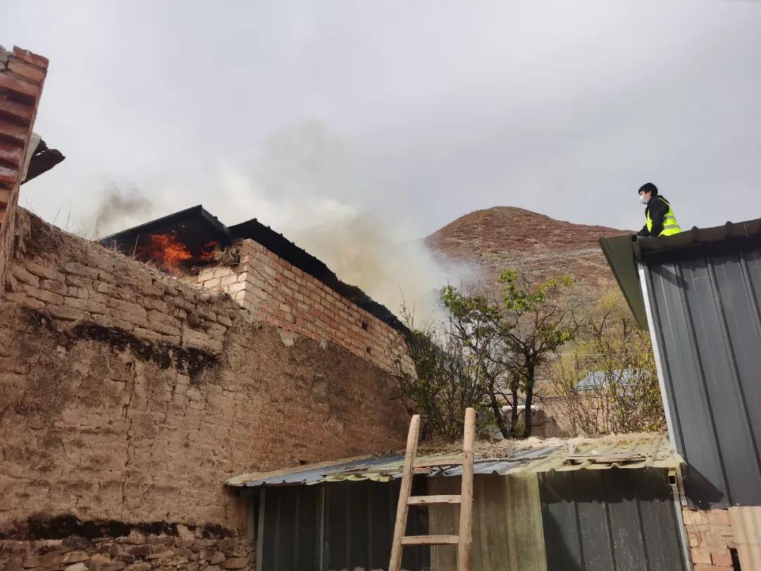 10月30日下午3點,交通監(jiān)理公司負(fù)責(zé)幫扶的臨潭縣洮濱鎮(zhèn)馬旦溝村一戶村民家中突然冒出滾滾濃煙,火光在濃煙中忽隱忽現(xiàn)。著火是一座磚木結(jié)構(gòu)彩鋼屋頂?shù)男路浚饛奈蓓敓?,越燒越旺。著火的房屋旁邊堆放著多年的老柴火,干燥異常,一絲火星就能點燃,而與著火點緊鄰著的就是布局緊密的鄉(xiāng)親們的房屋,再往外圍則緊接著山林,如果火勢蔓延,后果將不堪設(shè)想。