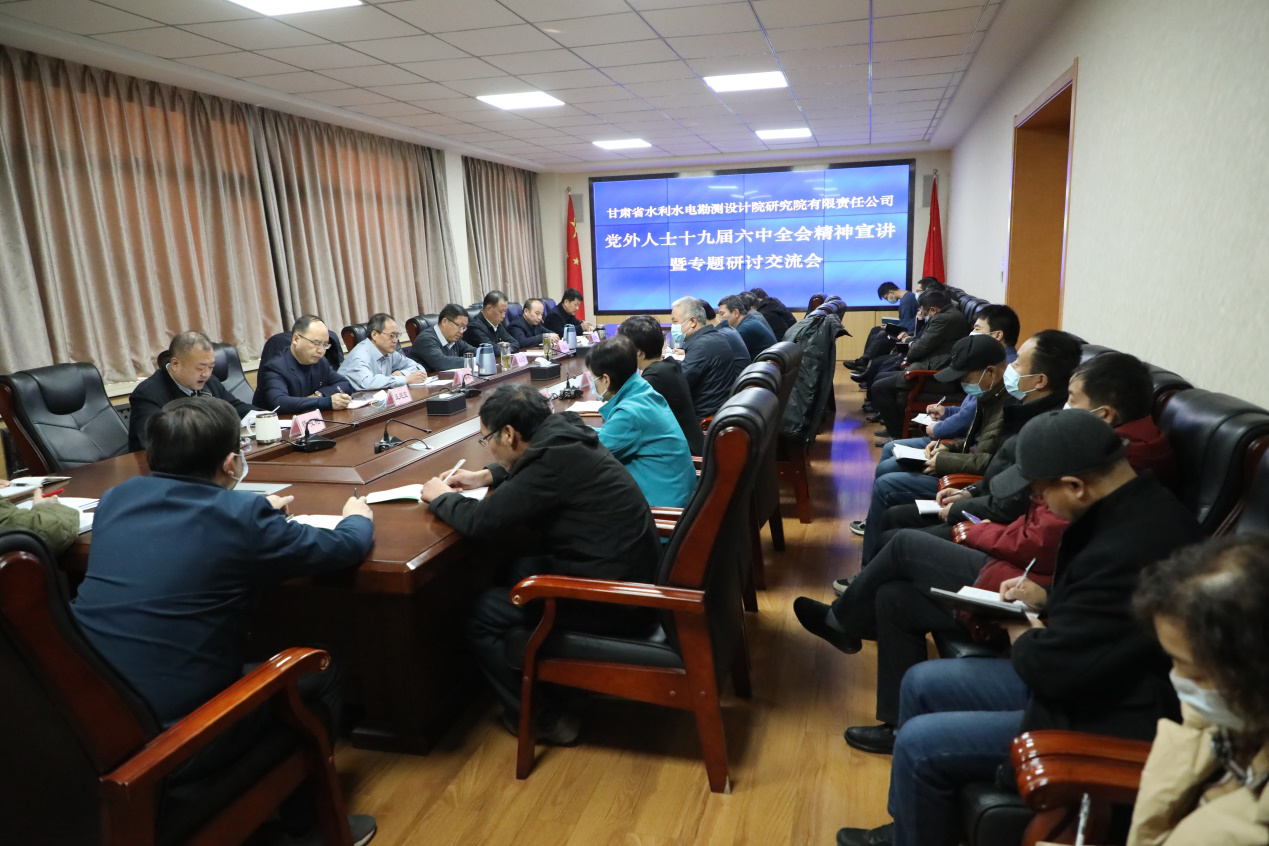 12月13日,水電設(shè)計(jì)院組織黨外人士宣講研討中共十九屆六中全會(huì)精神,九三學(xué)社、民主促進(jìn)會(huì)、無黨派人士、少數(shù)民族和黨外知識(shí)分子代表共40余人參加。