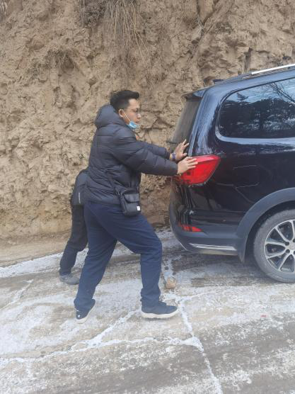很多在隱患點(diǎn)上的行政村分布在舟曲縣周邊的大山高處,又逢舟曲剛下完大雪,山路崎嶇,道路積雪結(jié)冰,即使在車上套上防滑鏈還是無法到達(dá)一些村落。面對(duì)重重困難,工程師們沒有退縮,當(dāng)積雪太深或結(jié)冰地路面太滑,車輛完全無法通行時(shí),他們或推車前行,或頂風(fēng)冒雪,深一腳淺一腳地步行好幾公里,走到開展工作的村子里去。