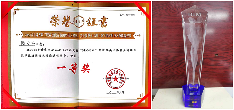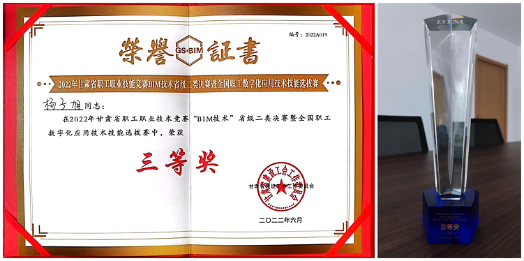 近日,在甘肅省職工職業(yè)技能競(jìng)賽“BIM 技術(shù)”省級(jí)二類決賽暨全國(guó)職工數(shù)字化應(yīng)用技術(shù)技能選拔賽中,甘肅省建筑設(shè)計(jì)研究院有限公司榮獲優(yōu)秀組織獎(jiǎng),選送的參賽選手陳文杰和楊子旭分別榮獲一、三等獎(jiǎng)。