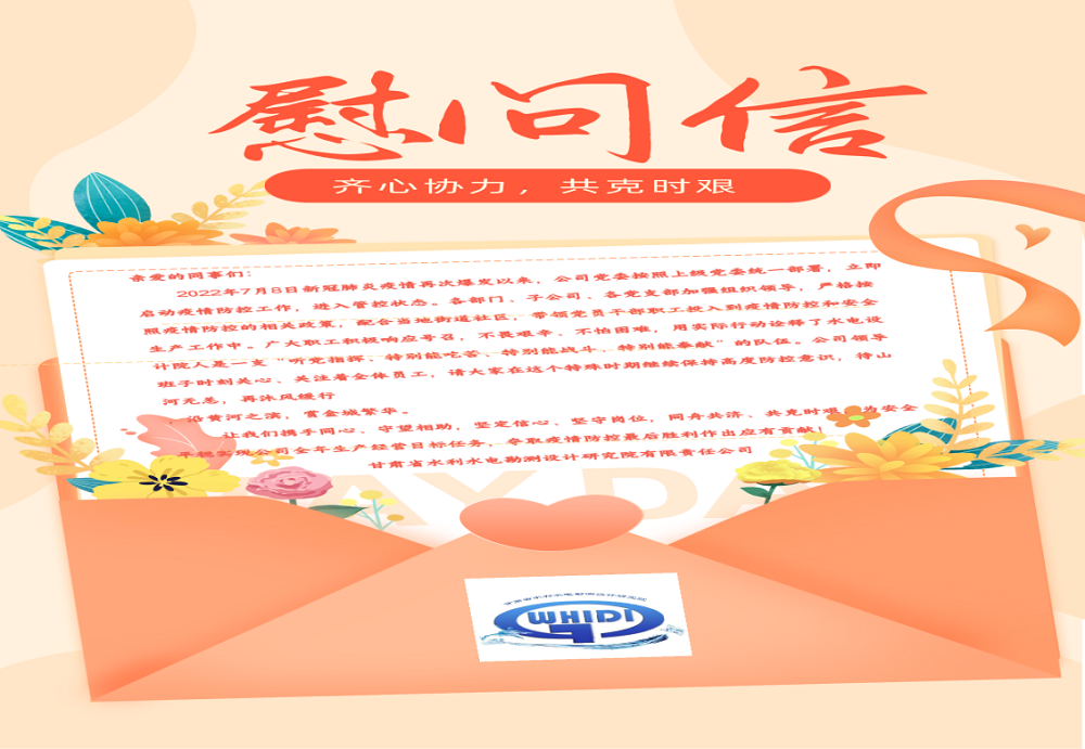 同時,注重加強(qiáng)人文關(guān)懷。水電設(shè)計院黨委對集中隔離的員工進(jìn)行了一對一電話連線慰問,并向全體員工致信,對堅守一線員工、志愿者和居家辦公人員給予鼓勵,鼓舞大家消除不安緊張情緒,提振精神、鼓舞士氣,動員廣大員工積極配合和參與疫情防控,及時做好心理疏導(dǎo),保證員工隊伍情緒穩(wěn)定。