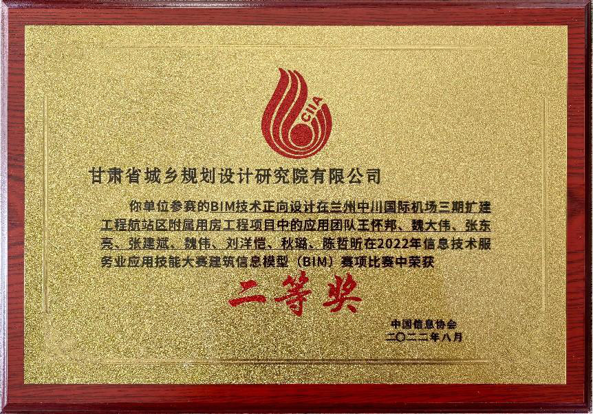 近日,甘肅省城鄉(xiāng)規(guī)劃設(shè)計(jì)研究院有限公司“BIM技術(shù)正向設(shè)計(jì)在蘭州中川國(guó)際機(jī)場(chǎng)三期擴(kuò)建工程航站區(qū)附屬用房工程項(xiàng)目的應(yīng)用”榮獲中國(guó)信息協(xié)會(huì)2022年信息技術(shù)服務(wù)業(yè)應(yīng)用技能大賽二等獎(jiǎng)。此次獲獎(jiǎng)是繼該BIM應(yīng)用項(xiàng)目榮獲2021年甘肅省第四屆BIM技術(shù)應(yīng)用大賽設(shè)計(jì)組一等獎(jiǎng)之后,再次摘得的國(guó)家獎(jiǎng)項(xiàng),也是規(guī)劃設(shè)計(jì)院首次在國(guó)家級(jí)BIM技術(shù)應(yīng)用賽事中獲獎(jiǎng)。