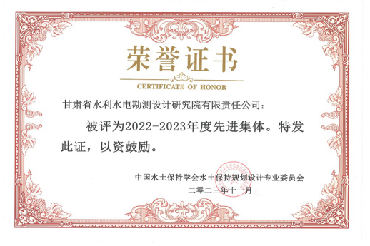 喜報(bào)|省水電設(shè)計(jì)院榮獲中國(guó)水土保持學(xué)會(huì)2022-2023年度先進(jìn)集體榮譽(yù)稱號(hào)