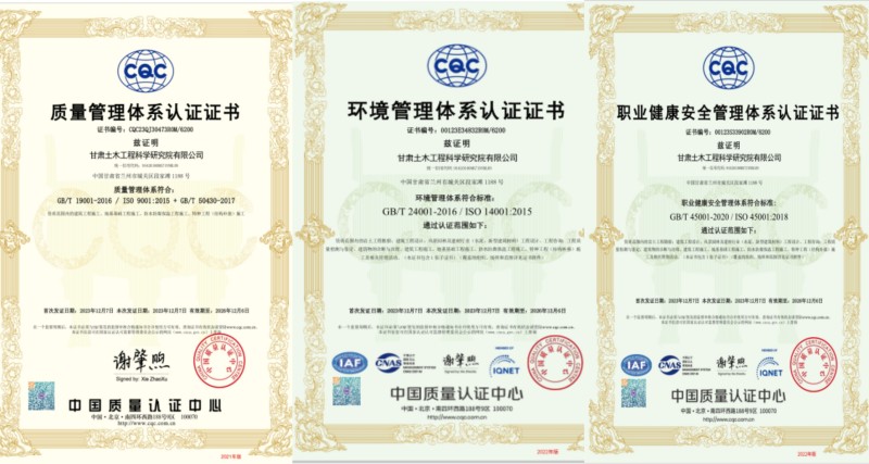 近日,經(jīng)中國檢驗認證集團甘肅有限公司的嚴格評審,土木工程院及子公司“蘭州金建工程建設(shè)監(jiān)理有限公司”均順利通過了GB/T 50430(工程建設(shè)施工企業(yè)質(zhì)量管理體系)、ISO14001(環(huán)境管理體系)、ISO45001(職業(yè)健康安全管理體系)認證并取得證書。