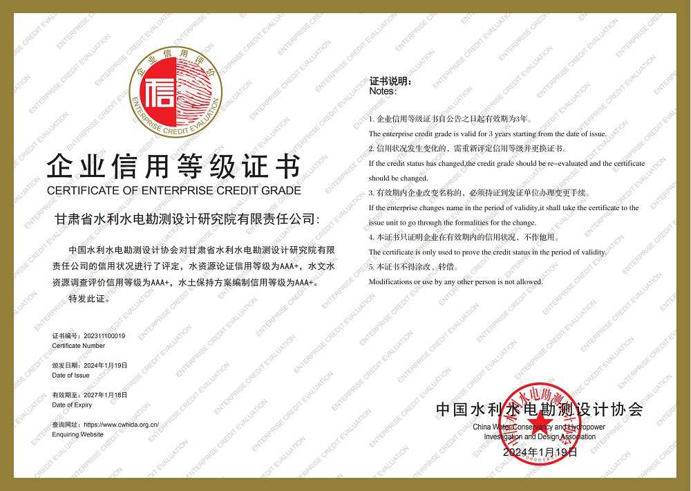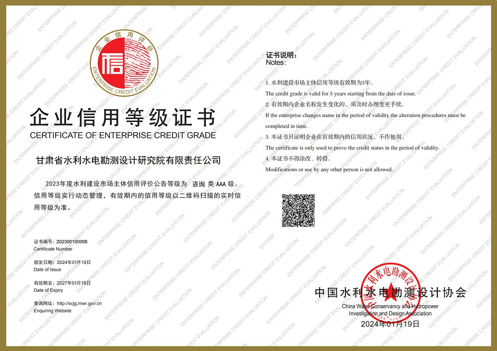 日期: 2024年01月30日|來源: 甘肅省水利水電勘測設(shè)計研究院有限責任公司| 字號:【 |打印