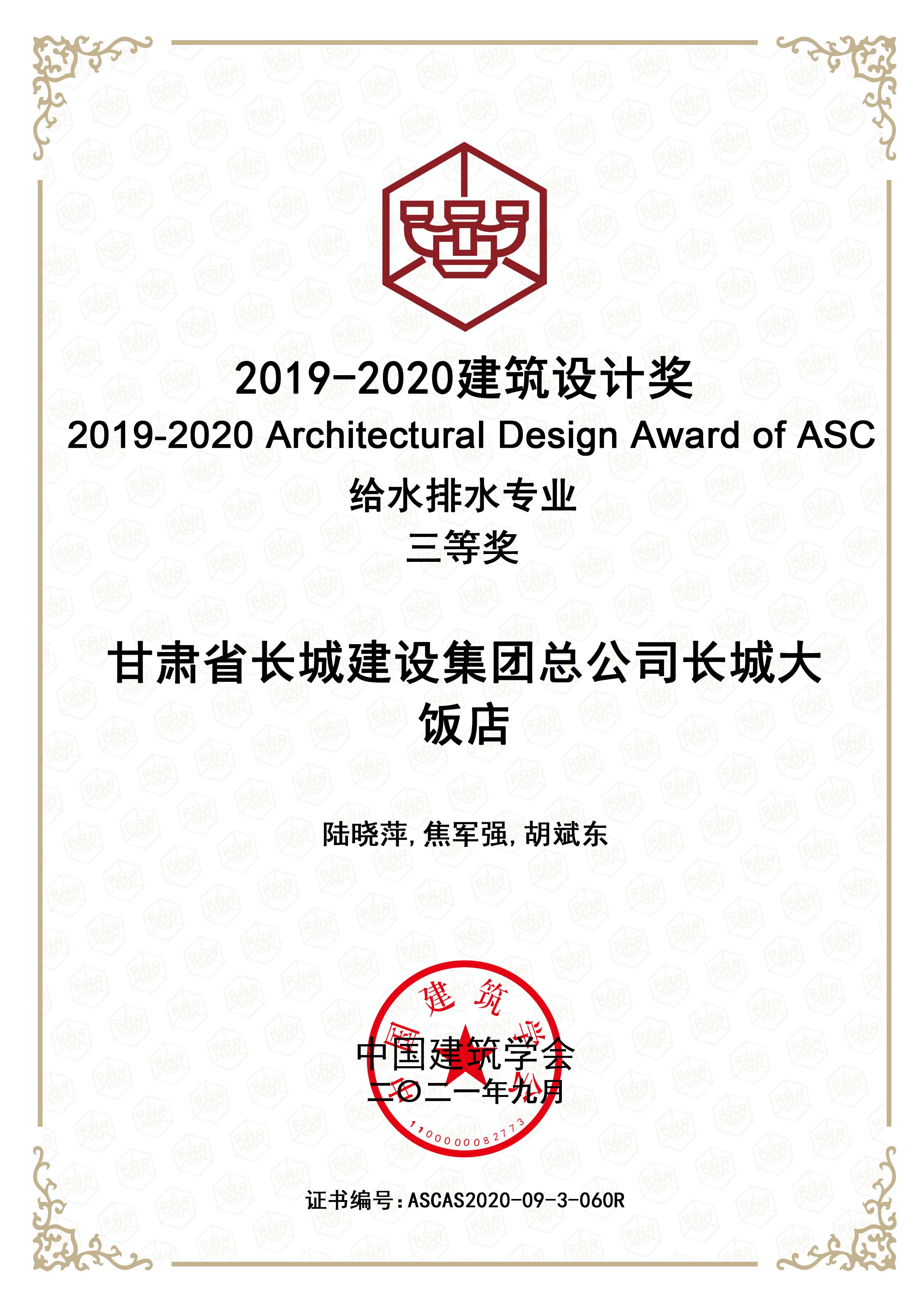 2019—2020建筑設(shè)計(jì)獎(jiǎng)給排水專業(yè)三等獎(jiǎng)